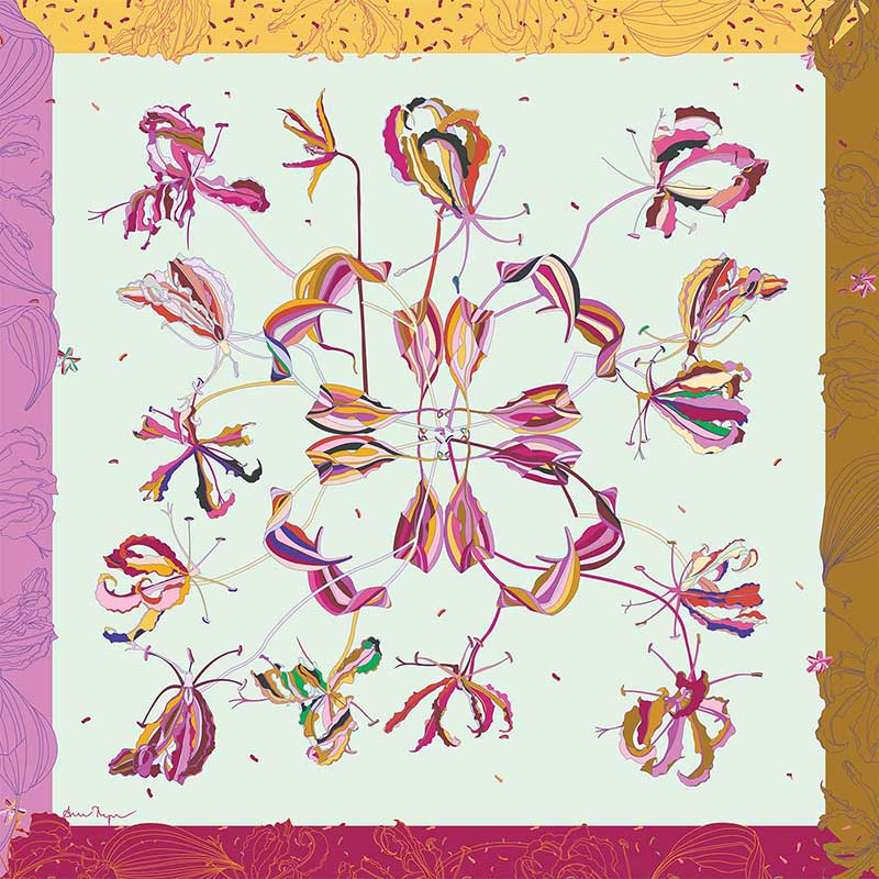 Title: Gloriosa (Pink, Red, Yellow & Tan)